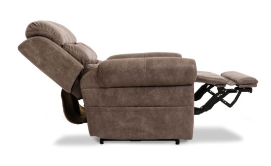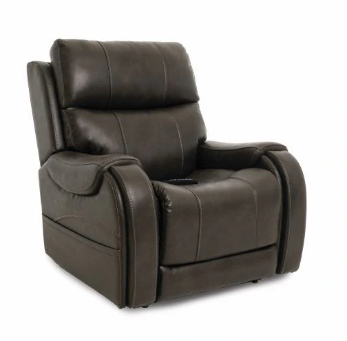 The Atlas Plus Lift Recliner has a hideaway cup holder and wireless phone charger built into the armrest. This chair offers a powered headrest, lumbar support, backrest and foot extension which comes out when going to a recline position.