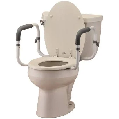 This toilet aid helps in daily function is very important. The Toilet Support Rails keep you safe and stable in the bathroom. The cushioned armrests provide stability when sitting and rising, and the frame bolts directly to the toilet for added safety.